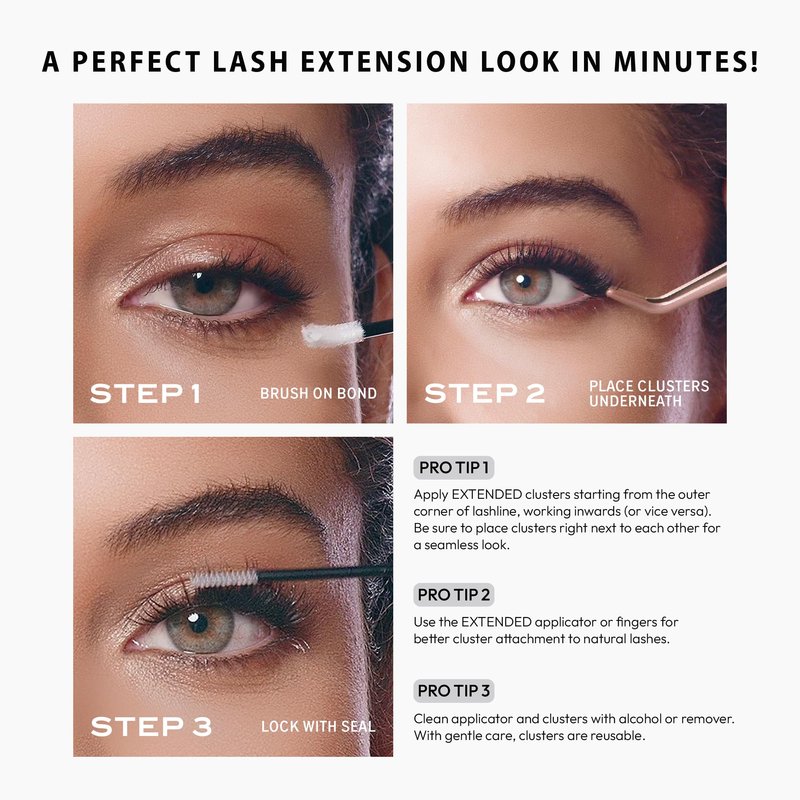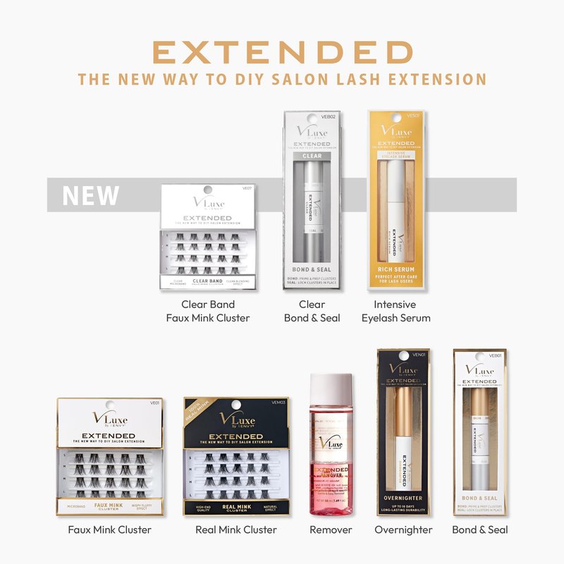 Introducing the VLuxe Extended Clear Band Faux Mink Clusters, where innovation meets elegance in eyelash extension technology. These lashes are designed with a clear, ultra-thin band that not only offers incredible comfort but also a seamless blend with your natural lashes, ensuring a clean and light extension look. Crafted from high-quality faux mink, these clusters replicate the luxurious texture and luster of real mink while being completely cruelty-free. Each cluster is meticulously designed to provide a natural and flattering enhancement to your eyes, perfect for those seeking a subtle yet stunning transformation. The clear microband technology is a game changer, allowing for an invisible fit that others will notice only for its natural appearance and eye-enhancing effect. Whether you’re stepping out for a regular day at the office or preparing for a glamorous evening event, these lashes provide versatility and style. Elevate your lash game with VLuxe Extended Clear Band Faux Mink Clusters, the ultimate choice for a comfortable, long-lasting, and beautifully natural lash look. For an optimal application experience, we highly recommend pairing these lashes with the V-LUXE Extended Clear Bond & Seal. Part of the same collection, this dual-headed lash adhesive is specially designed to complement the VLuxe lashes.