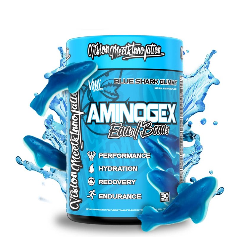 VMI Sports Aminogex Ultra | EAA + BCAA Powder | Amino Acid + Hydration Recovery Drink with Electrolytes, Betaine and Glutamine | (30 Servings) (Blue Shark Gummy)