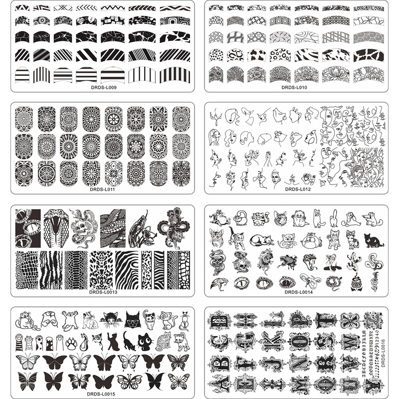 - Package Included: 16 Pcs nail art plates, 2 stampers, 2 scrapers, 1 Storage Bag. Due to different nail polish quality, some nail polish is not suitable for stamping, please choose the right nail polish. Please try again if you can not transfer the design to the stamper on the first time(All Plates not include any plastic backcover Holder,We recommend to use our plastic backcover to avoid metal edge problem when using .Pls check our store which have suit size for this size plate.)
