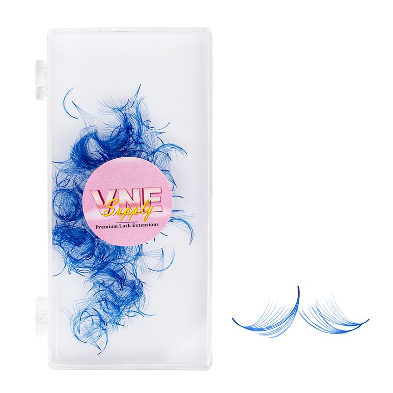 VNE 500 Fans Colorful Lash Extensions | Premade Volume Lash Extensions | Premade Mega Volume Fans | Colored Lash Extension | Russian Volume Eyelash Extensions |6D, Blue, C Curl, 12mm
