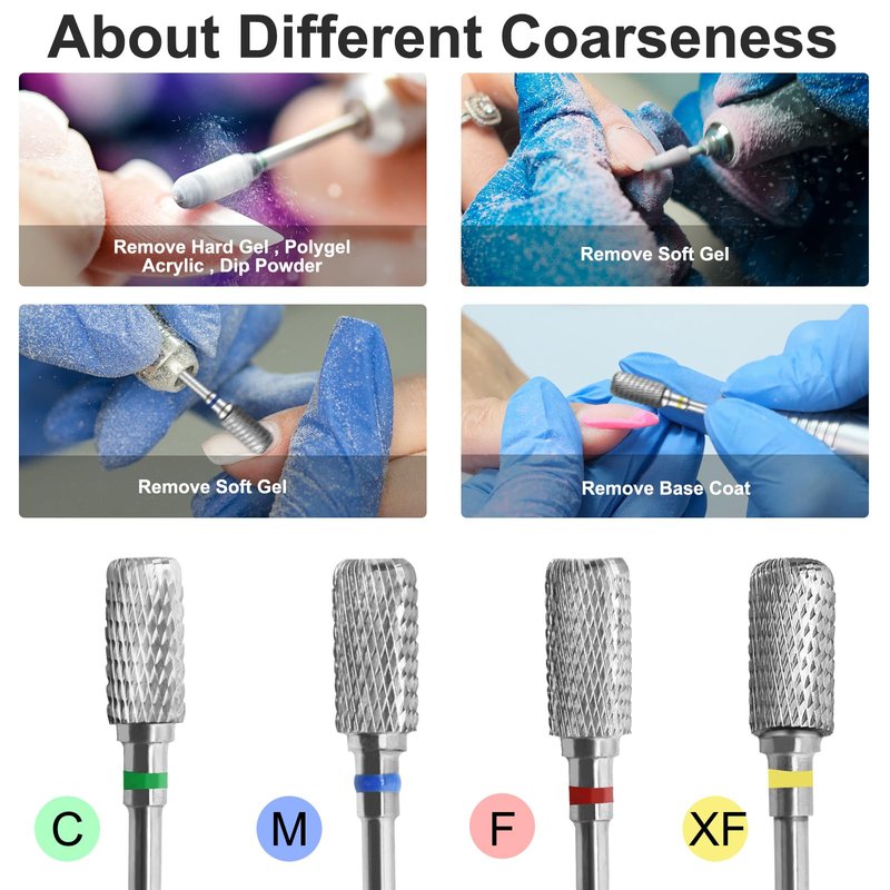 - ✅ Applications: This electric nail drill bits helps nail technicians with hard-to-reach surface areas. Ideal for removing acrylics, perfect for removing gel nail polish, dipping nails, cutting through heavy acrylics and reshaping, and great for removing lifted areas around the nail bed without causing any damage.