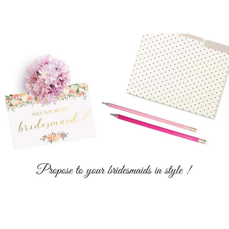 - π EXTRA DETAILS: Each bridesmaid proposal card includes a cute envelope with floral motif and a brilliant gold foil sticker to seal the envelope.