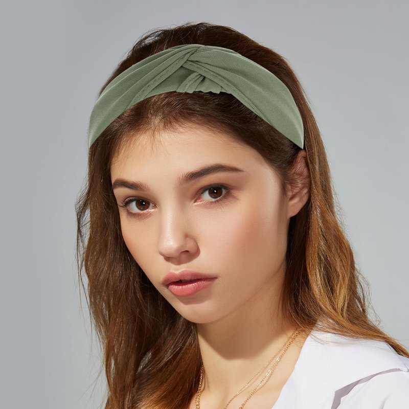 VOCOSTE Knotted Headbands for Women, Top Knot Headband, Cloth Cross Knot Headband, Wide Turban Headband, Womens Knotted Headbands Solid Colors, Green Headband, Hair Accessories for Women