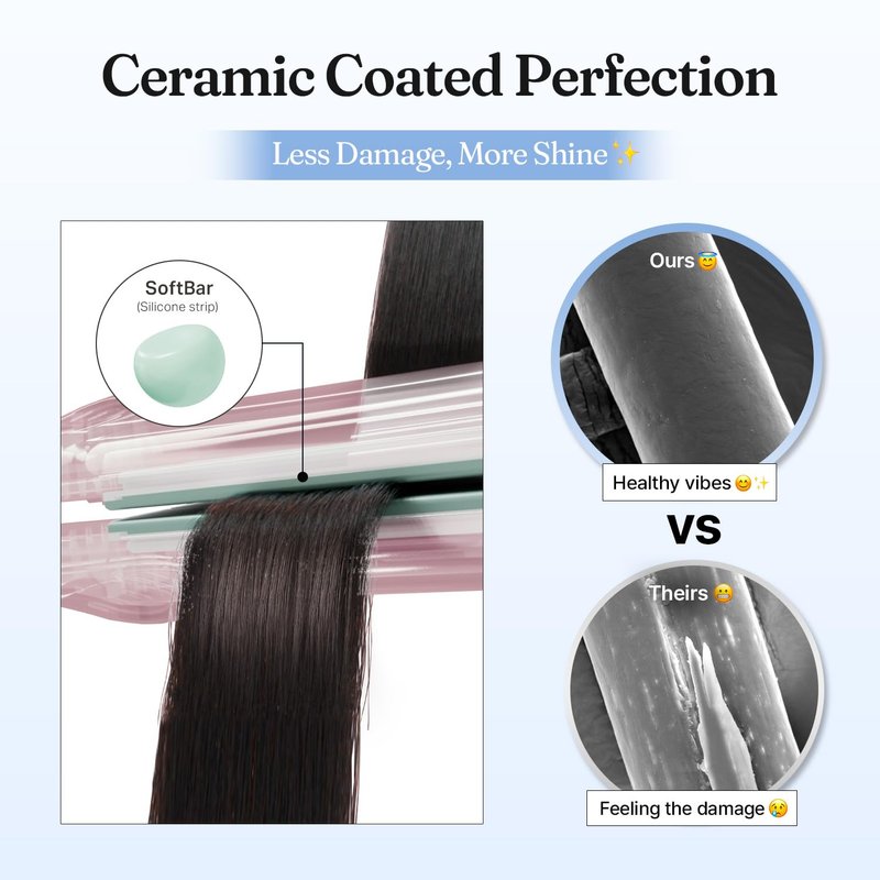 - Shine On, Less Damage: Ceramic coated plates keep your hair smooth and shiny, while minimizing heat damage.