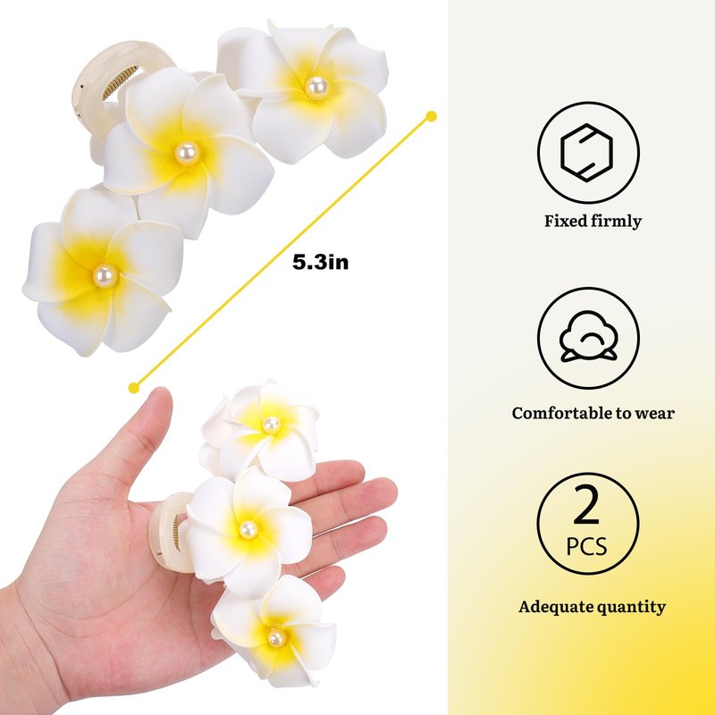 Vodolo Hawaiian Flower Hair Claw Clips for Women,2Pcs Artificial Flower Clips,Plumeria Hibiscus Hairclip for Beach Party,Cute Summers Tropical Flower Bow Hair Accessories for Girls Gifts (Yellow)