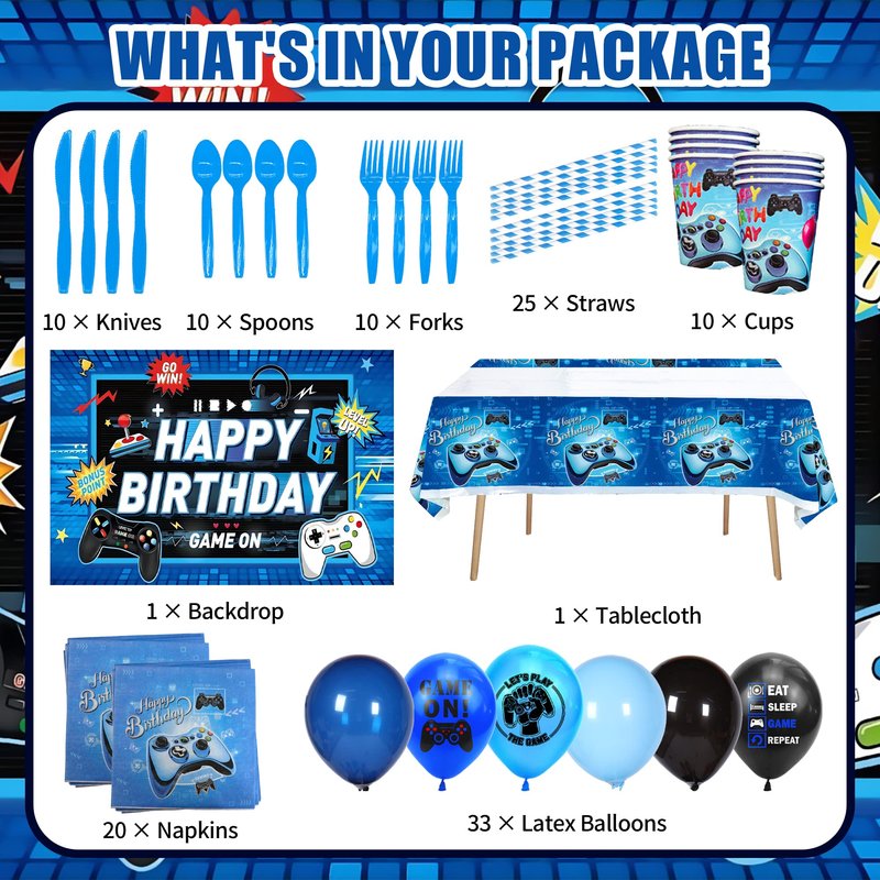 - FUNCTIONALITY: This game party decorations is of high quality, the colour design matching can bring a perfect sense of visual experience, suitable for displaying indoor or outdoor, birthday party, picnic, gathering and many other scenarios, create a joyful atmosphere for your party