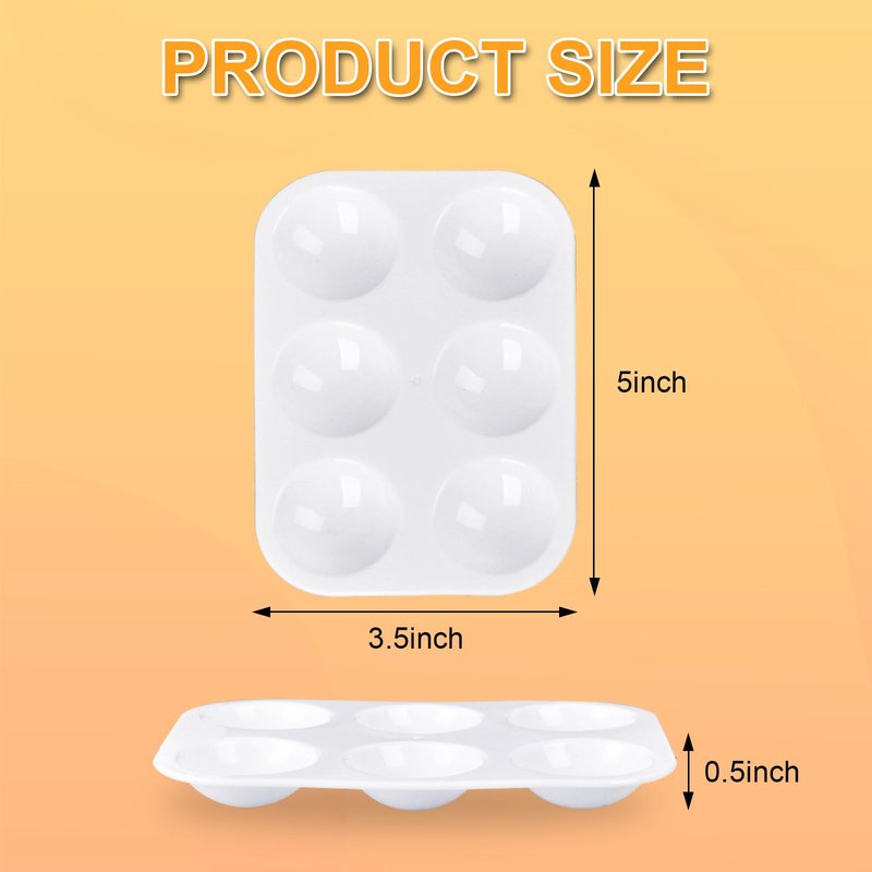 Package includes: 100 Pcs White Plastic Paint Palette Material: Plastic Size: 5 x 3.5 x 0.5 inches / 12.7 x 8.9 x 1.3 cm Compact and Portable: These tray palettes are compact and lightweight, making it very portable; You can easily stack paint holder tray together to save storage space and create on the go outside. Multi-Functional Choice: Our paint mixing palette has become a widely chosen tool among artists, art students, painting parties, and school classrooms; Its can create including watercolor, ink, acrylic, oil paintings and more.