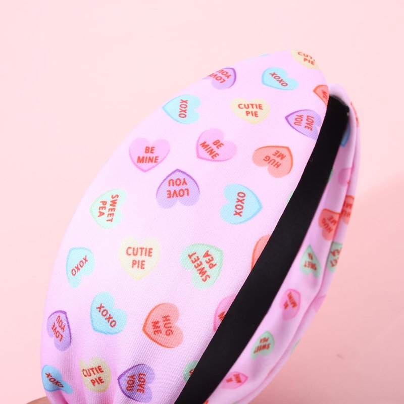 - Adding a touch of holiday spirit to your valentine's day celebrations with these pink valentines day headbands for women!These sweet valentines day gifts for her features a top knot headband with XOXO LOVE KISSME conversation heart print,which can create a strong valentines atmosphere.Get ready to turn heads and create memories that will last a lifetime with our valentines conversation heart headband!