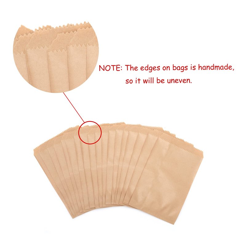 Volanic 100PCS 4X6 Inch Kraft Paper Bags Small Flat Party Favor Bag for Bakery Cookies Sandwich Soap Packing