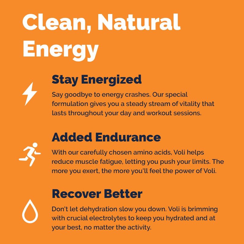 - PERFORMANCE AND IMMUNE FUNCTION: Voli Energy includes key amino acids and sodium bicarbonate that deliver exceptional benefits for your body: