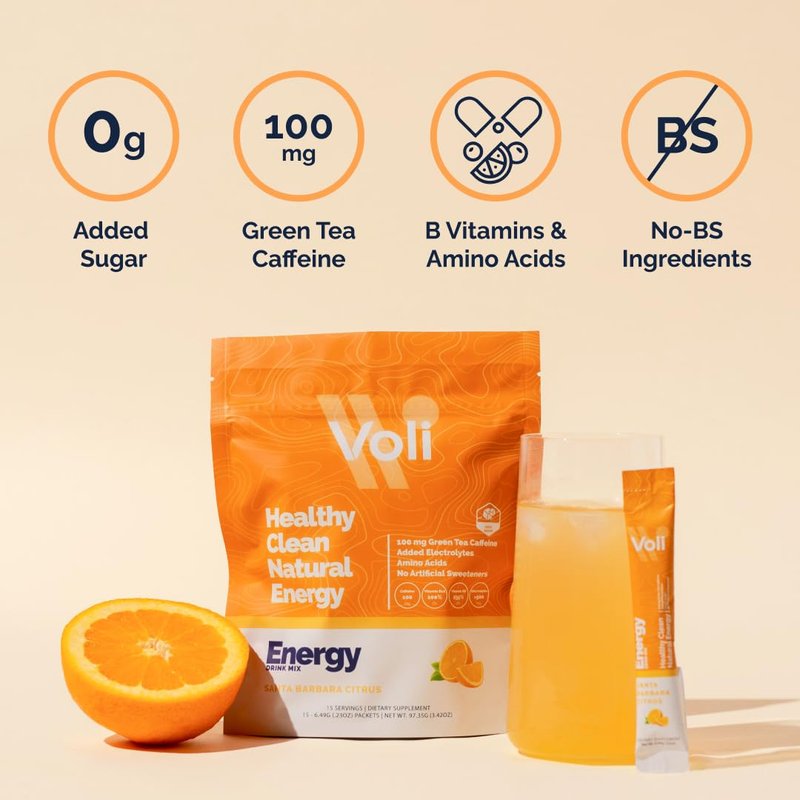 Voli Energy - Santa Barbara Citrus - Clean Energy Supplement, 100mg Caffeine from Green Tea Extract, No Artificial Sweeteners, No Added Sugars, Replenish and Revitalize, 15 Servings (Pack of 1)