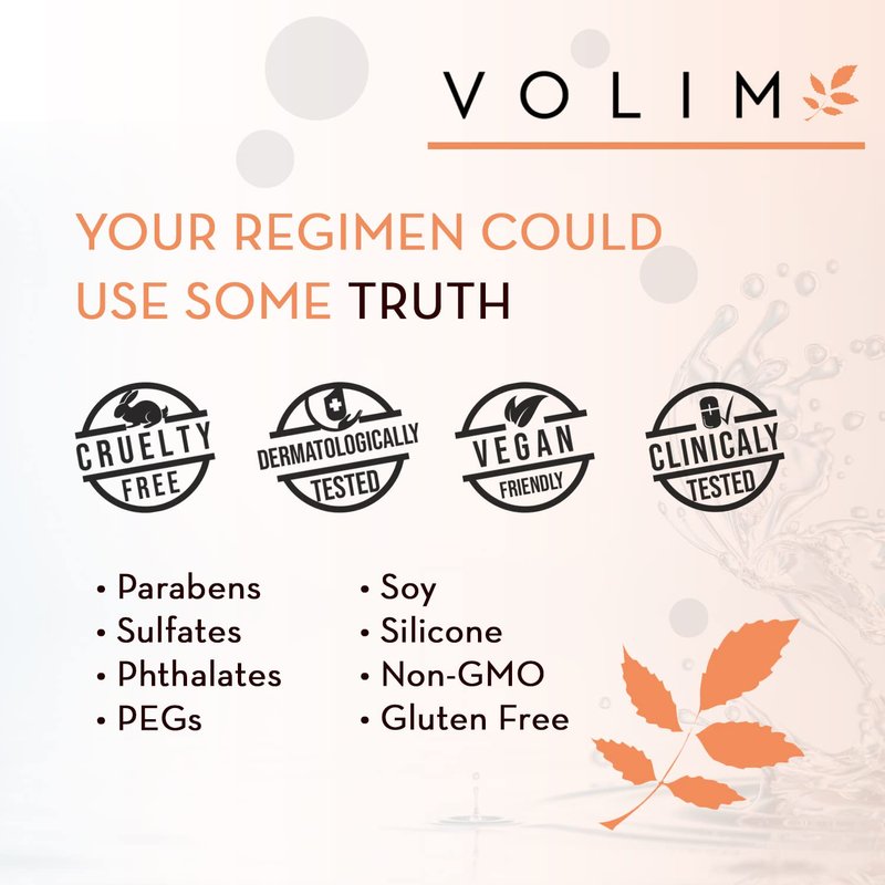 VOLIM Skin Natural is the New Makeup You are what you put on your skin, which is why at VOLIM we are obsessive about what goes into every bottle of our skin care products. All of our ingredients are naturally derived, and every bottle is packaged and dermatologist tested in the USA. NO NASTY: parabens, fillers, phthalates, formaldehydes, or other pore-clogging toxins. High quality skin care is our passion, and with VOLIM you will feel comfortable and confident in your own skin. VOLIM Bright & Beautiful: Youthful Beauty in a Bottle A must-have daily step in every skincare routine, our detoxifying Vitamin C serum is packed with a powerhouse ingredient combination that arms the skin with a line of defense against signs of again and photodamage, all while lightening and tightening for a natural vibrance you'll notice after just one week. Rooted in Nature: Vitamin C & Ferulic Acid - One of the best anti-aging ingredients on the market, Vitamin C is a powerhouse to fight aging, even skin tone, and is the key to maintaining a youthful, glowing complexion. The combination of Vitamin C & Ferulic Acid penetrates skin to hydrate, brighten, lighten, and tighten your complexion. Rosemary Extract - Rosemary Extract calms, protects, and prevents signs of premature aging. It stimulates cell growth to reduce fine lines and wrinkles and tighten loose or sagging skin. Soothe skin and help heal acne and scars. Jojoba Oil - A humectant ingredient, jojoba seed oil attracts water to the top layer of the skin, keeping your face hydrated all day or night. Mold-resistant properties, while natural compounds of Vitamin E works as a powerful skin anti aging. Application: Apply 3-5 drops to cleansed and toned skin every morning. Recommended for the face, neck, and decolletage. Best followed by a mineral sunscreen for full UVA/UVB protection.