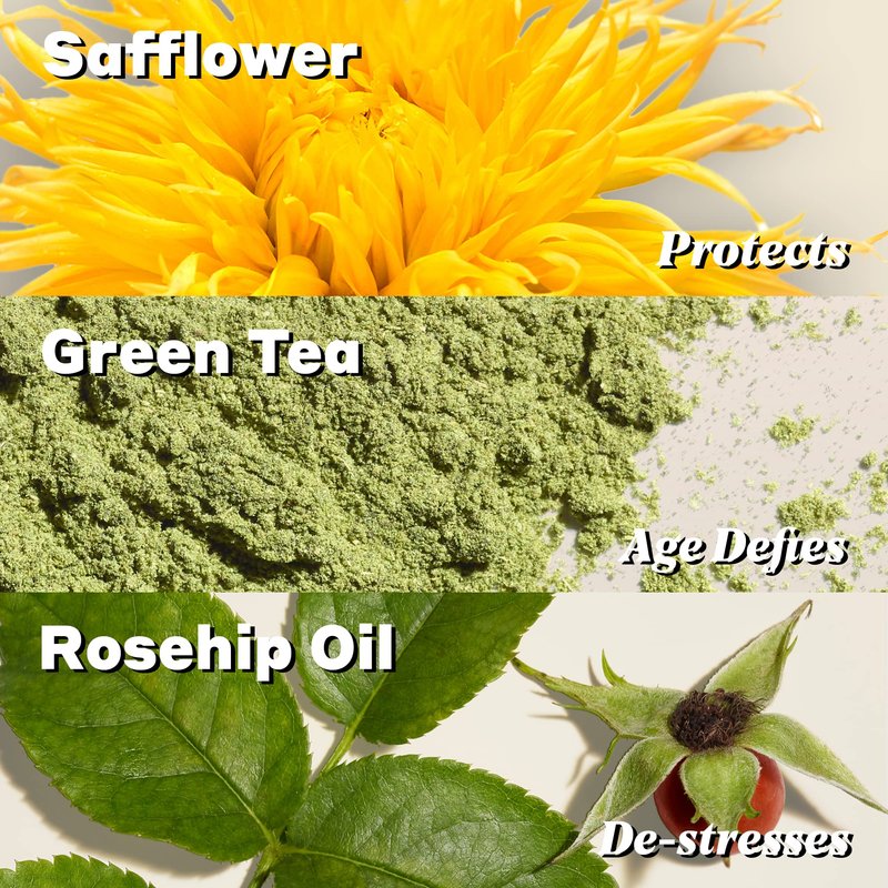 - Ingredients - Marigold helps protect skin from blue light; Sunflower Extract moisturizes; Indian Ginseng soothes.