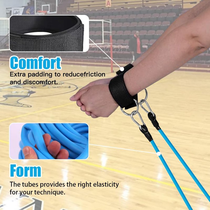 - Complete Volleyball Equipment Set: This comprehensive set includes 2 wrist belts, 2 ankle belts, 2 elastic ropes, 1 Figure 8 Resistance Band, and 1 storage bag for convenient transportation and organization