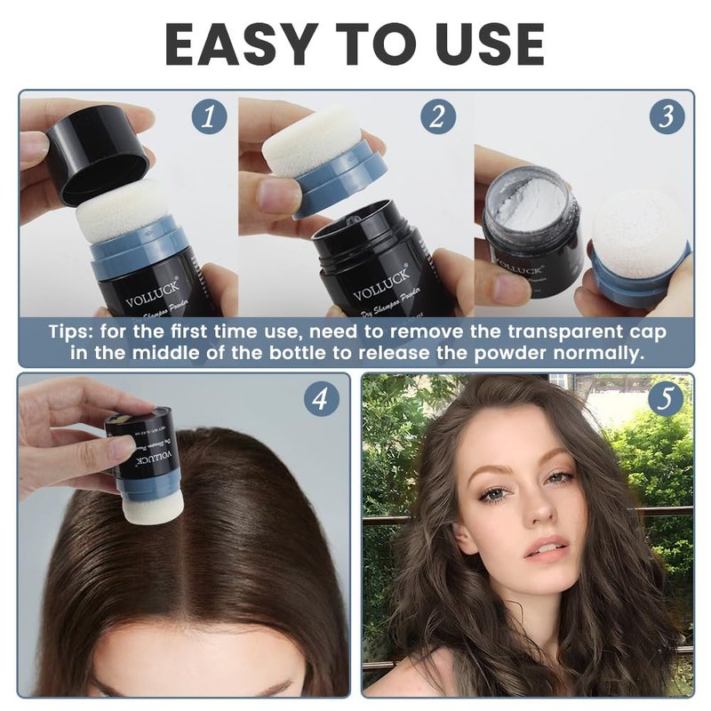 - EASY TO USE: Remove the inner stopper and shake the bottle to better release the powder. Gently pat on the oily scalp and areas you want. Then rub your hair until it is voluminous and fluffy. Our dry shampoo powder is suitable for all hair types with different lengths, styles, cuts and colors for both men and women.