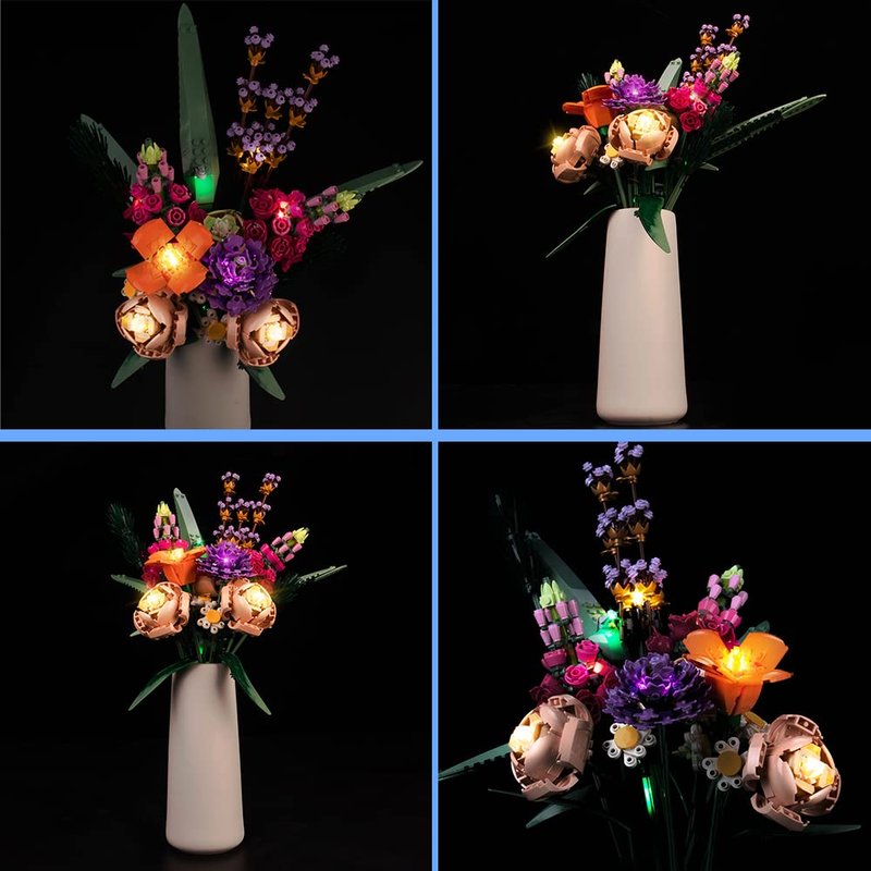 - 【Light Your Flower Bouquet Lego Set】Specially designed Compatible with Lego Icons Flower Bouquet 10280, brightness effect is soft, without destroying the appearance of your Lego Bouquet of Flowers, makes it come to life. With this LED lighting kit, your Lego Sets Flowers shines its beauty even in the dark