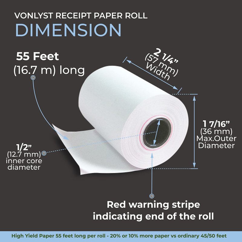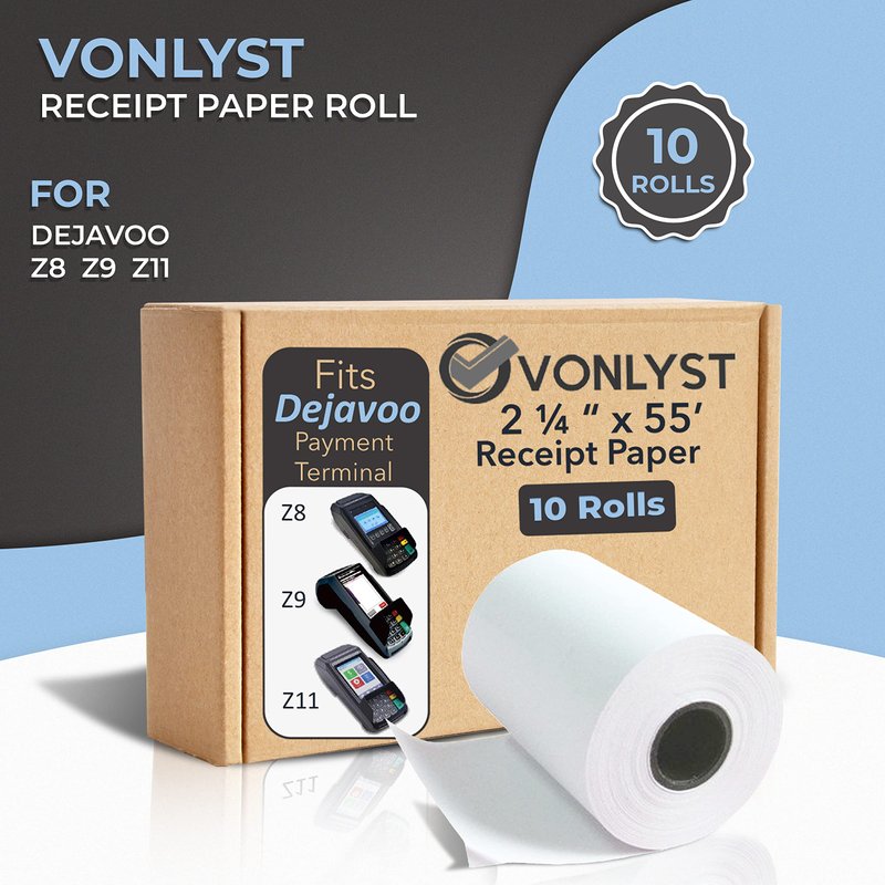 - PAPER ROLL SIZE designed to maximize the performance of your Dejavoo Payment Terminal Receipt printer. Vonlyst thermal receipt paper rolls are precisely manufactured in size of 2 1/4β x 55β (width x length)