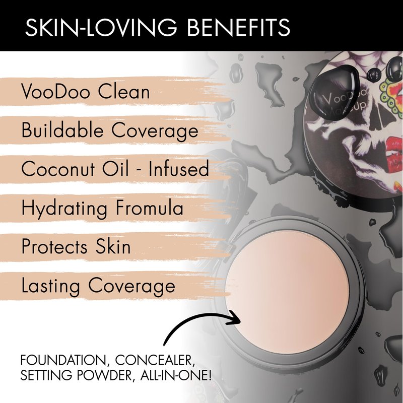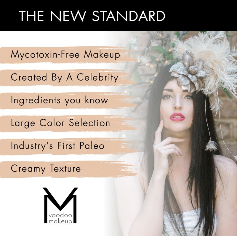 - Clean Beauty Formula - VooDoo Clean Beauty means no mycotoxins or nasty stuff in our foundation. Experience the purity of all natural makeup with ingredients like shea butter and coconut oil, leaving your skin feeling supple and flawless.
