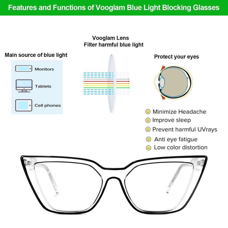▶ Voogueme glasses are specially designed to filter out harmful blue light.
