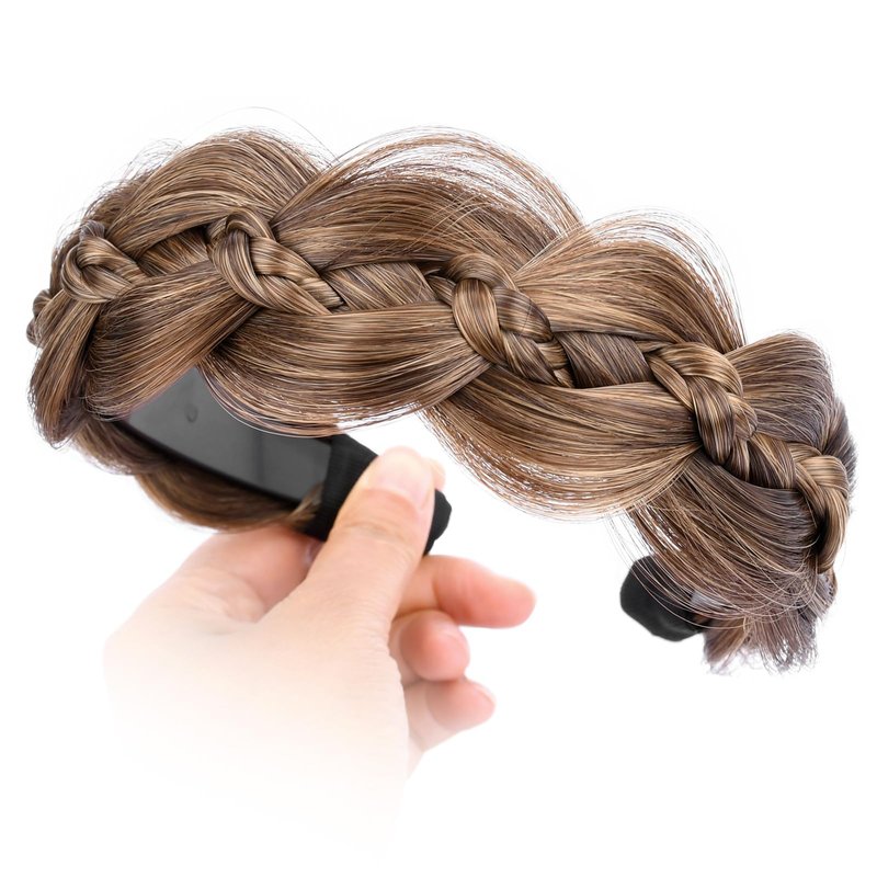 VOPPIS Wide Braided Headband with Teeth Synthetic Hair Plaited Headband Fishtail Braided Hair Band Hairpiece for Girls Women DIGUAN (Claybank, Wide)