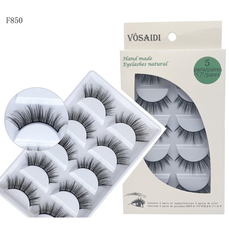 Vôsaidi False Eyelashes, Handmade Luxurious Fake Lashes, Natural Long Black, 5 Pairs with Glue (F860)