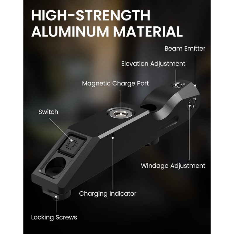 - 1.5 Hours to get fully charged and provides 2 hours continuous use. Elevation and Windage adjustable by provided wrench.