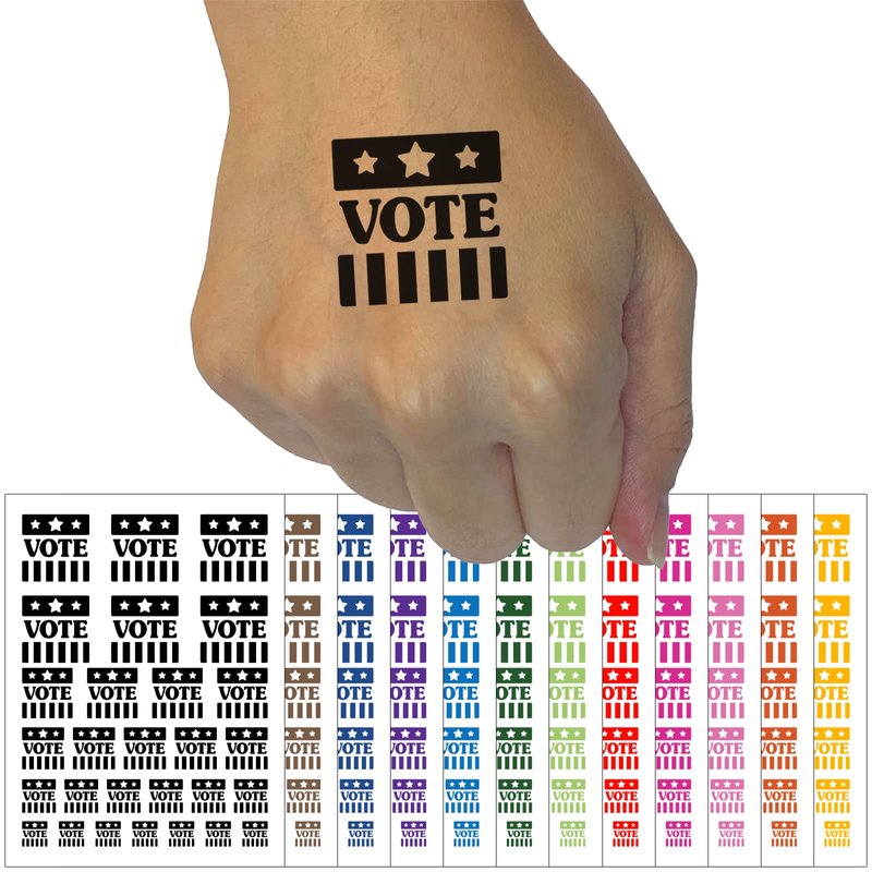Vote Stars and Stripes Voting Patriotic Temporary Tattoo Water Resistant Fake Body Art Set Collection - Orange (One Sheet)