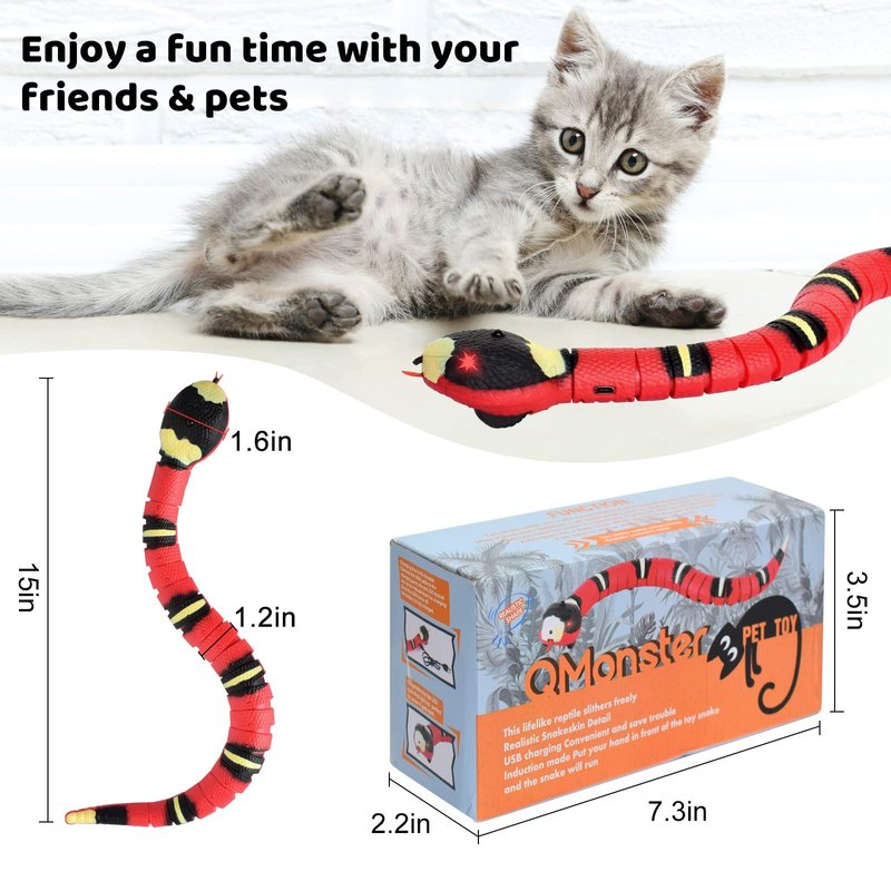 - Realistic Simulation Snake Cat Toy-This snake cat toy is made of high quality ABS material, which is so safe and durable. And the snake's body with 3D textures and bright colors, which lets the snake toy more realistic. Moreover, it can S-shaped movement, looks like real snake moving.