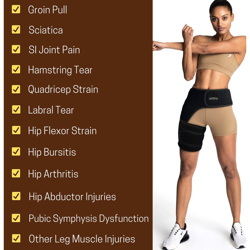- PROMOTES INJURY RECOVERY- The Vriksasana hip stabilizer and groin brace provides sciatic nerve pain relief, SI joint pain relief, and helps speed up healing from groin pull, hip flexor injury, pulled quad, hamstring pull, hip bursitis, labral tear, or other leg muscle injuries. The brace is multi-functional and can be used as a sciatic nerve brace, hip flexor brace, hip brace for labrum tear, and sacroiliac belt / SI joint belt.