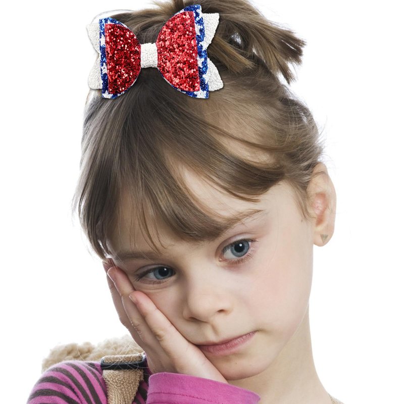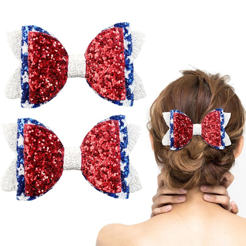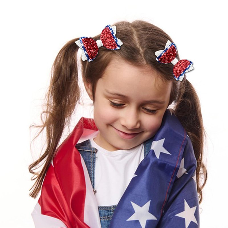 - 【Unique design】 : The Independence Day hair clip features a stylish sequin bow in red, white and blue, make you more eye-catching and attractive. Unique designs make it easy to DIY holiday outfits and hairstyles that will make you stand out in a parade or Fourth of July event.