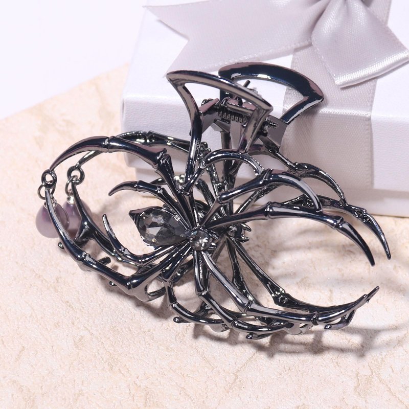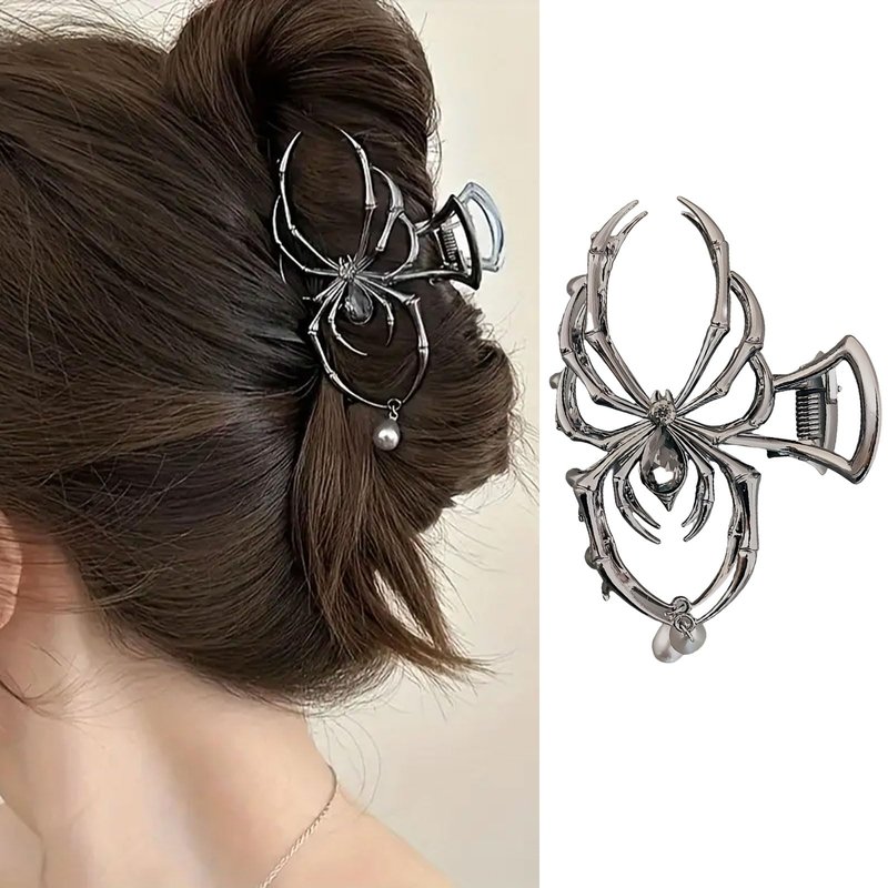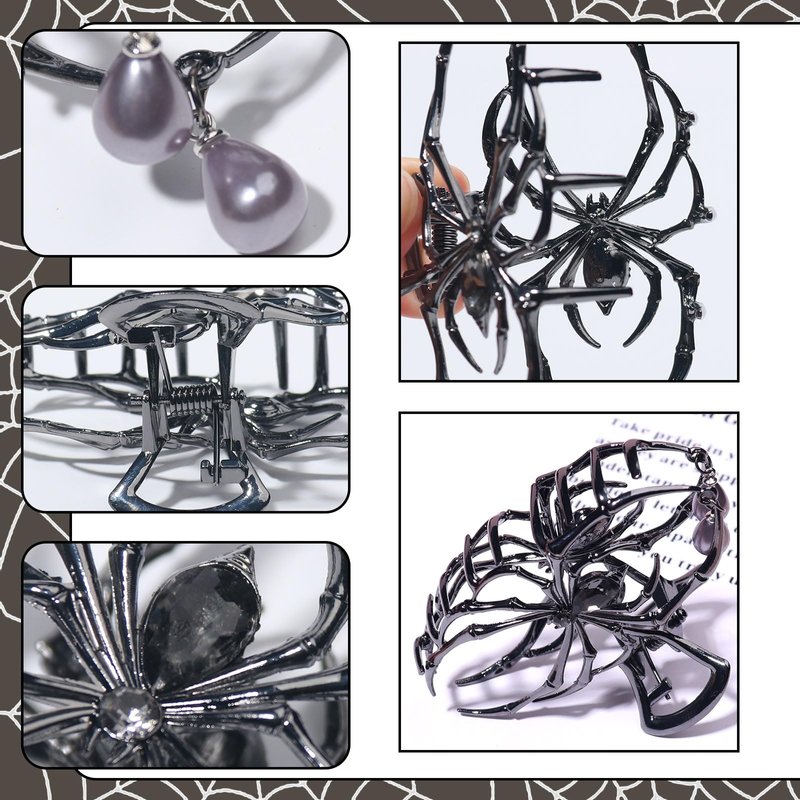Vsdski Halloween Hair Claw Clips Metal Spider Hair Clips Punk Black Claw Clips for Thick/Thin Hair Pearl Charm Design Hair Jaw Clips Strong Hold Hair Barrettes Halloween Hair Accessories for Women