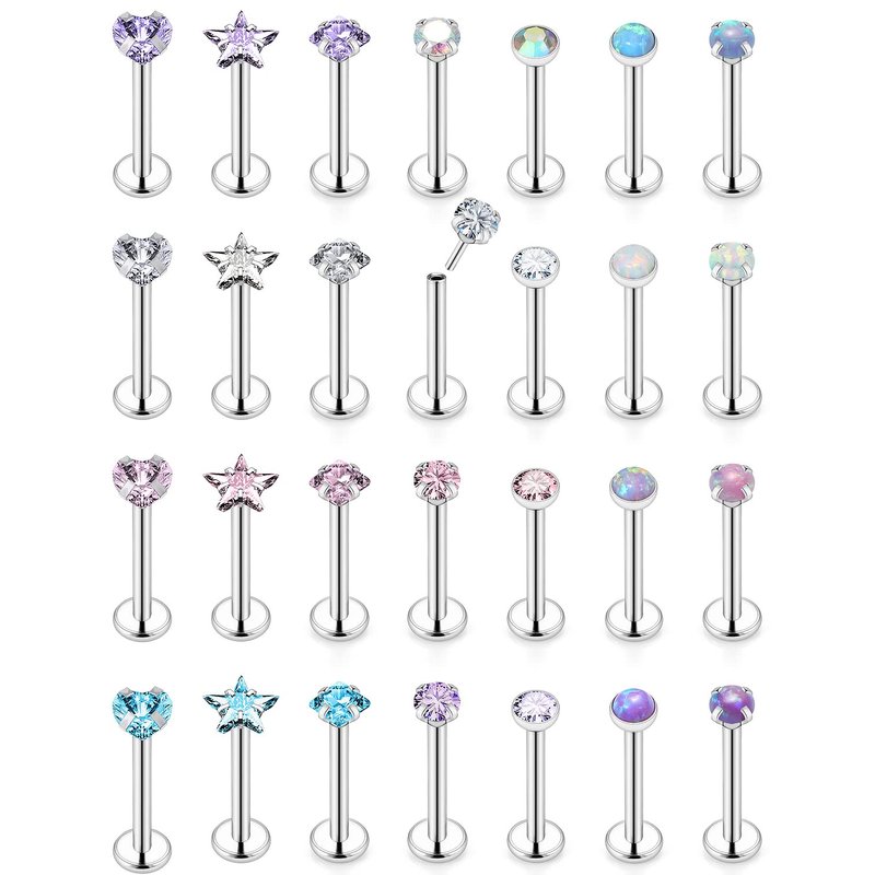 - [ITEM CONTAIN]: You Will Receive 28 Pieces Different Designs Threadless Push in Lip Ring Tragus Conch Earrings Piercing Jewelry, All Of Them Are Beautiful And Elegant, Multiple Choices For Meeting Your Various Needs.