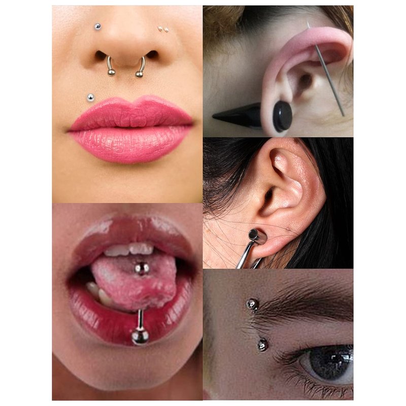 - [SUITABLE FOR USE]: These Body Jewelry Piercing Kit Tools Can Be Used For Belly Button Rings, Tongue Rings, Septum Rings, Nose Rings Piercing, Lip Rings, Eyebrow Rings, Ear Piercing, Cartilage Tragus Helix Rook Conch Daith Earrings Piercing Jewelry