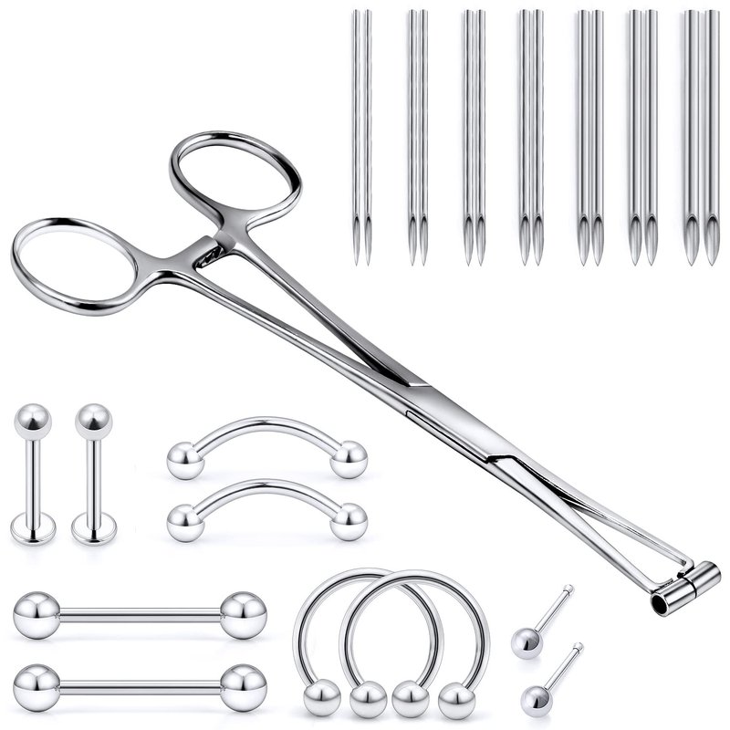 - [ITEM CONTAIN]: You Will Receive 1 Pieces Forceps Piercing Clamps Piercing Tools with 14 Pieces Piercing Needles and 10 Pieces Piercing Jewelry, All Of Them Are Beautiful And Elegant, Multiple Choices For Meeting Your Various Needs.