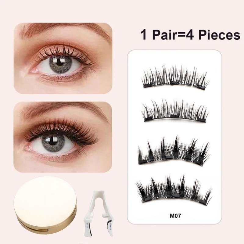 Experience the effortless glamour of magnetic eyelashes with this 2Pair set. Say goodbye to messy glue and tricky application, as these reusable lashes simply snap into place with magnets. Crafted with lightweight and flexible materials, they offer a natural and bushy look that enhances your eyes beautifully. The included applicator makes it easy to position the lashes precisely, ensuring a flawless and comfortable fit. Whether you're heading to a special event or simply want to elevate your everyday look, these magnetic eyelashes provide a fuss-free solution for stunning, voluminous lashes. Reusable and easy to remove, they're a game-changer for anyone seeking long-lasting, dramatic lashes without the hassle of traditional false lashes. Embrace the convenience and glamour of magnetic eyelashes and let your eyes captivate with their alluring, eye-catching appeal.