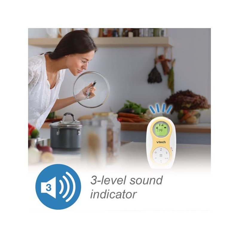 VTech Enhanced Range Digital Audio Baby Monitor with Night Light, DM1215. Big home? No problem. The VTech DM1215 Enhanced Range Digital Audio Baby Monitor with Night Light, lets you hear baby clearly, even from the other end of your house, or in a large backyard. Thanks to the enhanced range on this long-range baby monitor, you can be up to 1,500 feet away and still know how your little one is doing. Also, both the parent and baby unit includes a rechargeable battery, so you can monitor your baby anywhere! And since the baby unit doubles as a gentle night light, you can create a soothing glow for baby to fall asleep to. Lullabies and soothing sounds play right from the baby unit, giving you another soothing option.