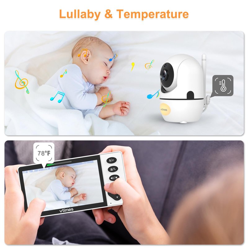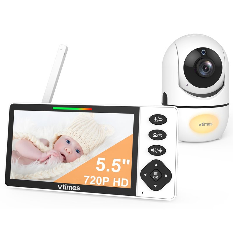 VTimes Baby Monitor with Camera and Audio, 5.5" 720P HD Screen Video Baby Monitor No WiFi VOX Mode Pan-Tilt-Zoom Alarm and 1000ft Range, Night Vision Night Light Lullaby, Ideal for Baby/Elderly/Pet