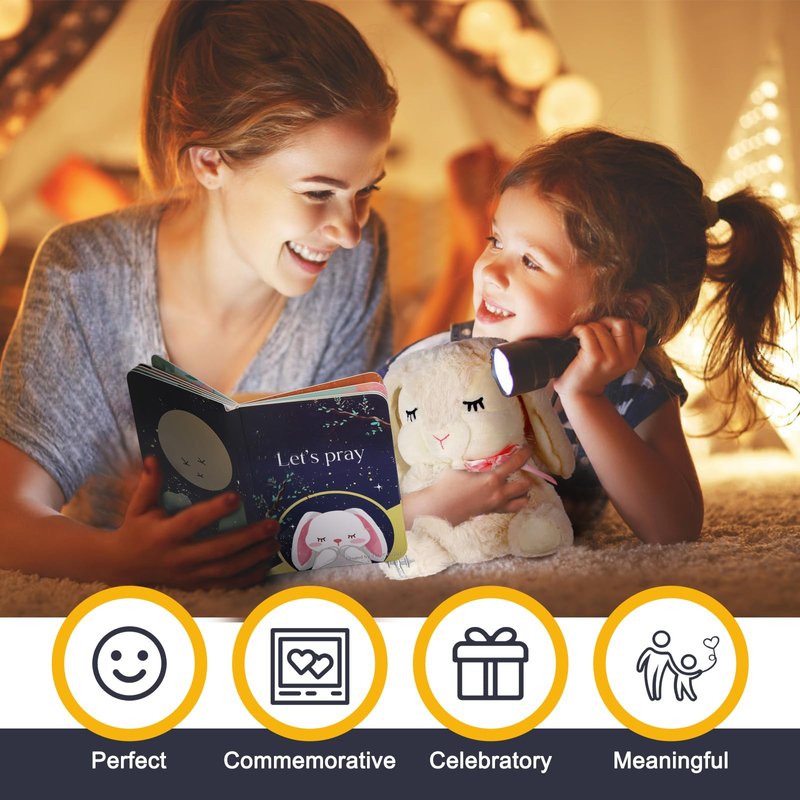 - CHRISTENING GIFTS SET FOR GIRL: The perfect baptism gift, lovely pray plush bunny accompanies your baby in prayer, and the exquisite board bookallows baby to explore the joy of prayer. It is a thoughtful gift for your baby.