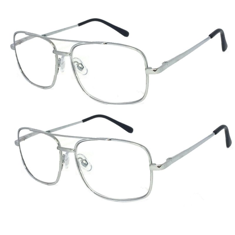 V.W.E. 2 Pairs Metal Frame Aviator No Line Progressive Clear Lens Spring Hinge Reading Glasses (Silver, 3.00)