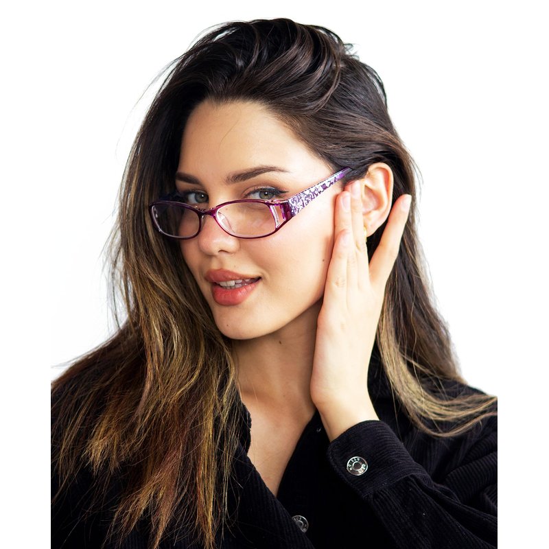 - Go fancy with floral! Decked out with bold flower prints and blooming patterns, the arms attached to these plastic reading glasses celebrate the undeniable beauty of lush gardens. Finished with temple cutouts for a snazzy twist. Our flowery readers are fit for the fashion-minded woman. The budget-savvy choice for ladies of style.