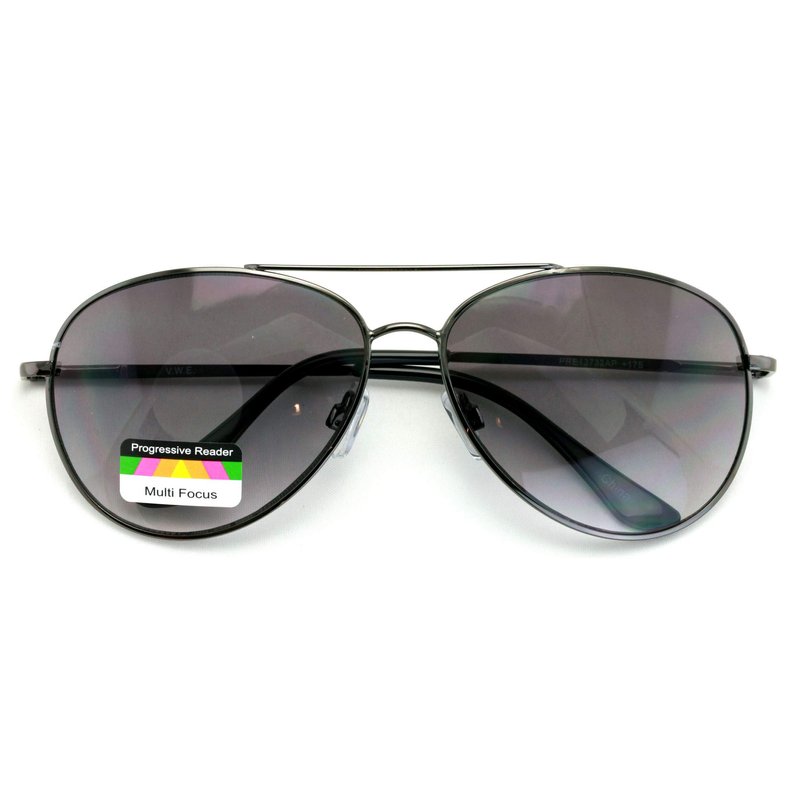 V.W.E. Aviator Progressive No Line Reading Glasses Tri-Focal Reader Outdoor Sunglasses (Gunmetal, 2.50)