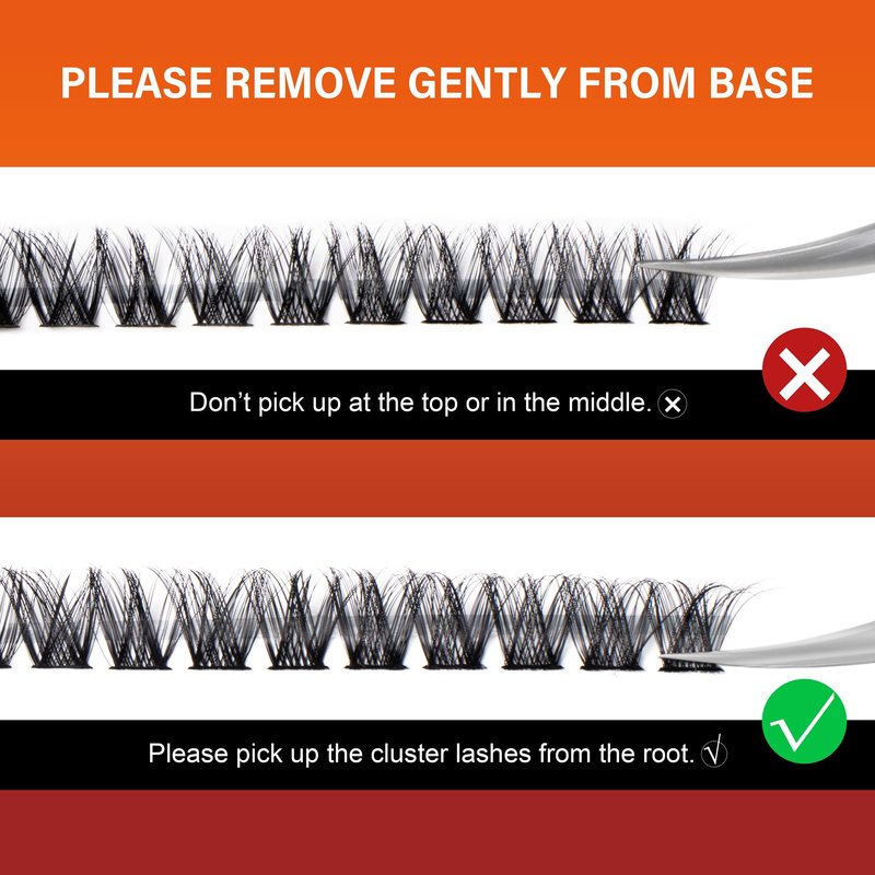 - ๐๐ฎ๐๐ ๐๐ผ W๐ฒ๐ฎ๐ฟ L๐ฎ๐๐ต๐ฒ๐ C๐น๐๐๐๐ฒ๐ฟ Apply a thin layer of eyelash adhesive to the root of natural eyelashes, gently place the eyelash cluster under the bottom of natural lashes using eyelash adhesive, and then apply a thin layer of eyelash sealant to fix the lash cluster in place and eliminate any residue