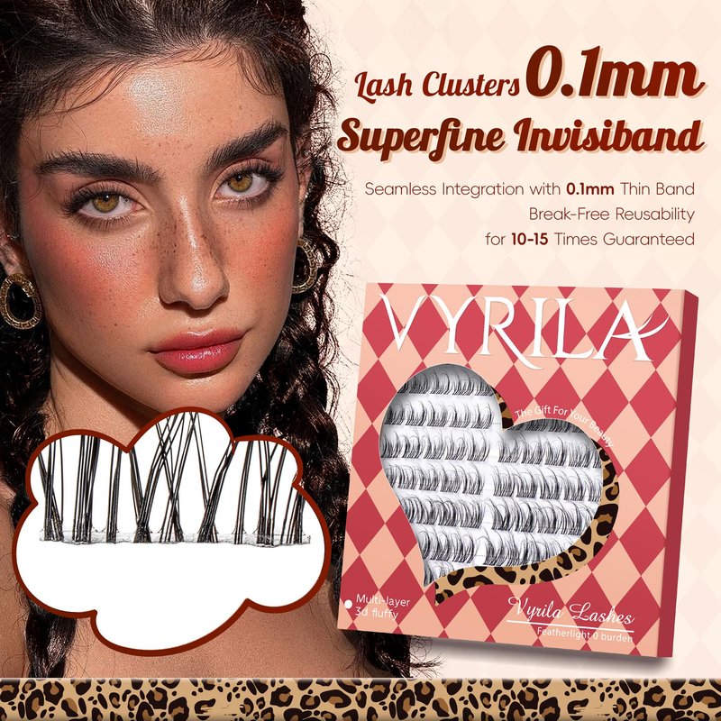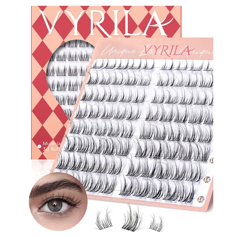 - 𝟎.𝟎𝟓𝐦𝐦 𝐏𝐁𝐓 𝐅𝐢𝐛𝐞𝐫 𝐃𝐢𝐲 𝐋𝐚𝐬𝐡𝐞𝐬 : VYRILA's lash clusters are made of exclusive 0.05mm PBT fiber and exclusive technology, giving each individual lash a natural matte black look. The natural tapered tips and feather-fluffy curl bring you a comfortable experience with 0-burden