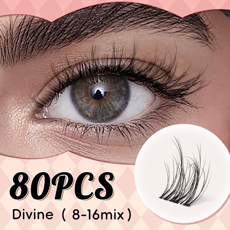 VYRILA Lash Clusters 0.05mm PBT Fiber Eyelash Clusters, 0.1mm Superfine Invisiband D Curl Diy Lash Extension, 80pcs 8-16mm Individual Lashes Clusters Like Eyelash Extensions (Divine-D-8-16Mix)