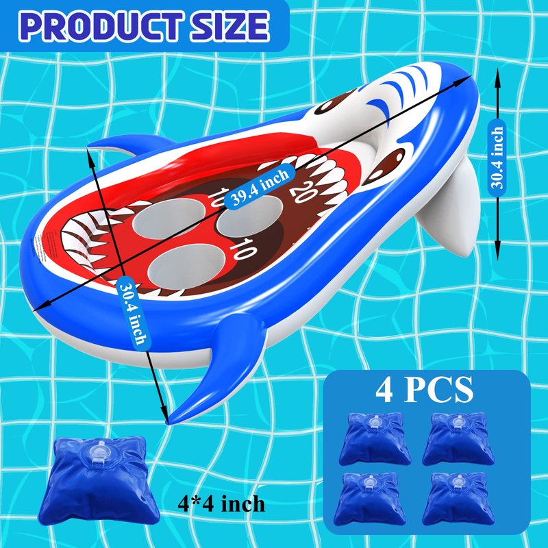 - Inflatable Shark Toys Set: A shark pattern cornhole game board, 4 Waterproof buoyant bean bags. Please Note: The bean bags need to be fill water inside rather than inflate
