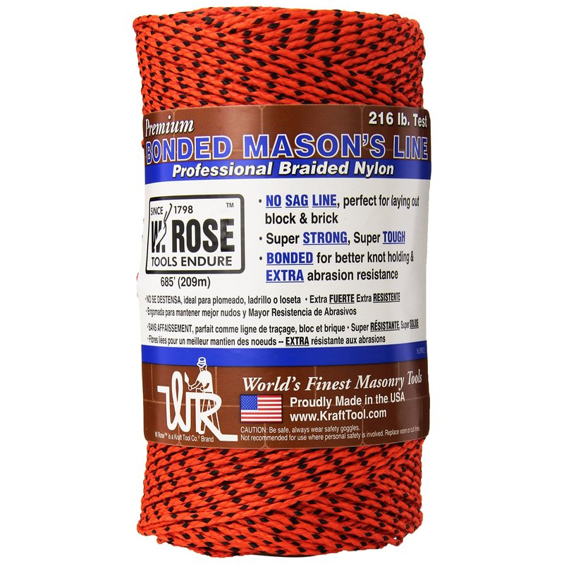W. Rose RO686 Super Tough Professional Bonded Braided Nylon Mason's Line, 685-Feet, Orange/Black