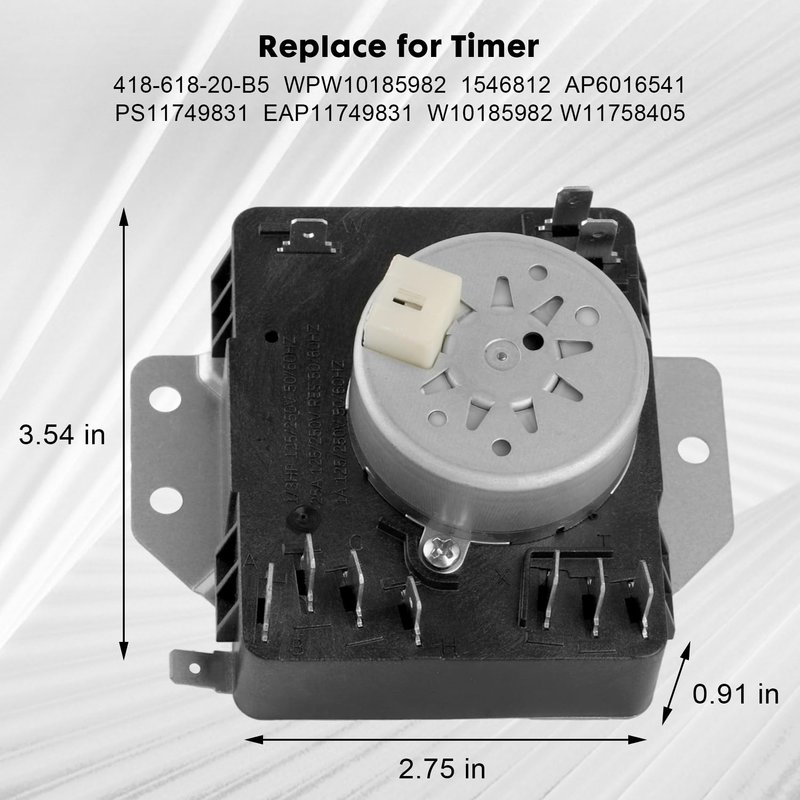 ✔ Replaces Timer Models: W10185982, W10185982 F/E/G, 418-618-20-B5, WPW10185982, 1546812, AP6016541, PS11749831, EAP11749831, W11758405.