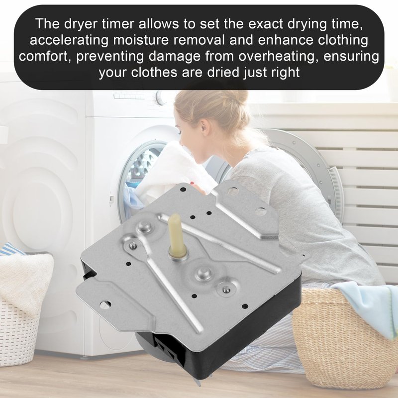 - The dryer timer allows you to set the exact drying time, accelerating moisture removal and enhancing clothing comfort. It prevents damage from overheating, ensuring your clothes are dried just right. With precise adjustment of the drying cycle, the timer avoids over- or under-drying, improving energy efficiency. Additionally, its durable components are made of moisture- and rust-resistant materials, ensuring a longer lifespan.