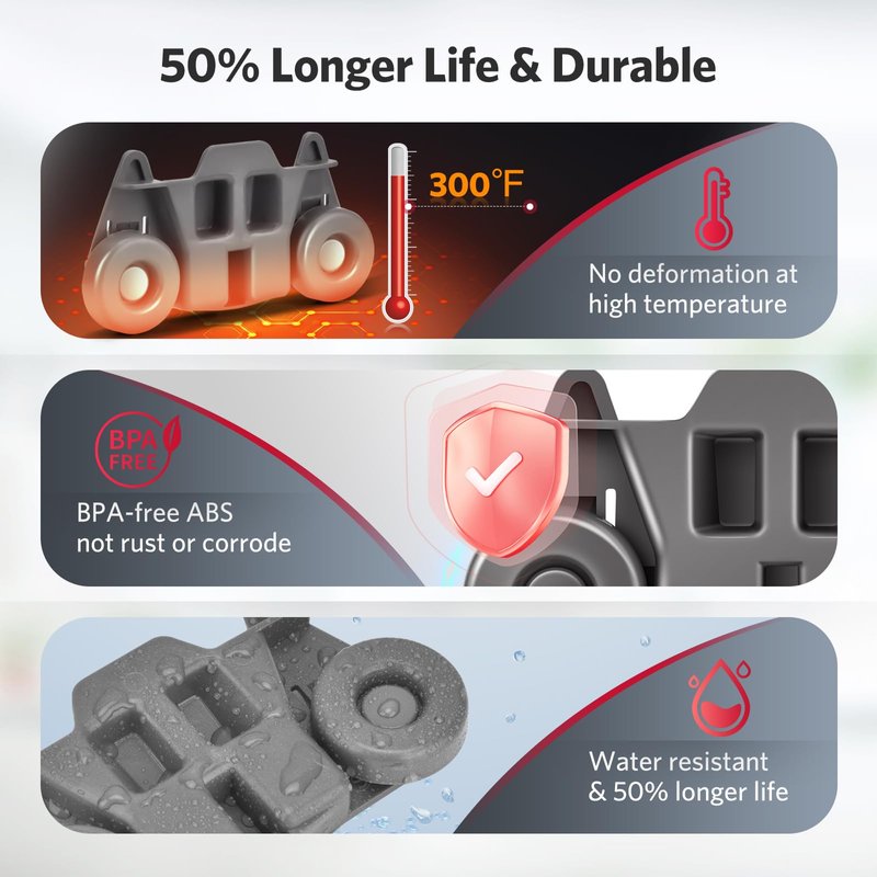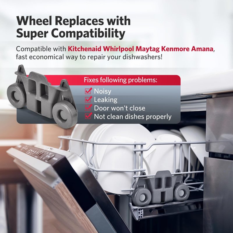 - 【Dishwasher Rack Replacement】:Perfect match most popular dishwasher brands. Your Good Choice to direct replace original whirlpool kitchenaid maytag dishwasher parts, fast and money-saving way to repair your dishwashers! Fix the following problems: Noisy/Leaking/ Door won't close/ Cannot clean dishes properly.