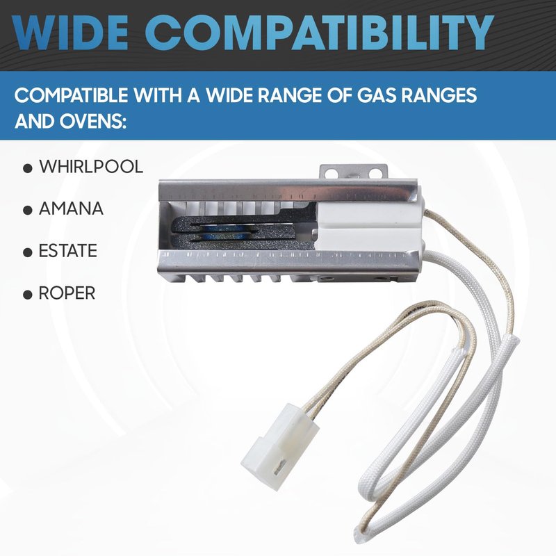 - MODEL NUMBER: W10918546 Gas Oven Igniter. This flat style gas oven igniter has ceramic housing and comes with a connector. It is responsible for igniting the gas flame in the oven, which is necessary for the oven to operate.